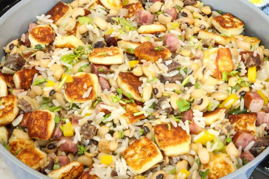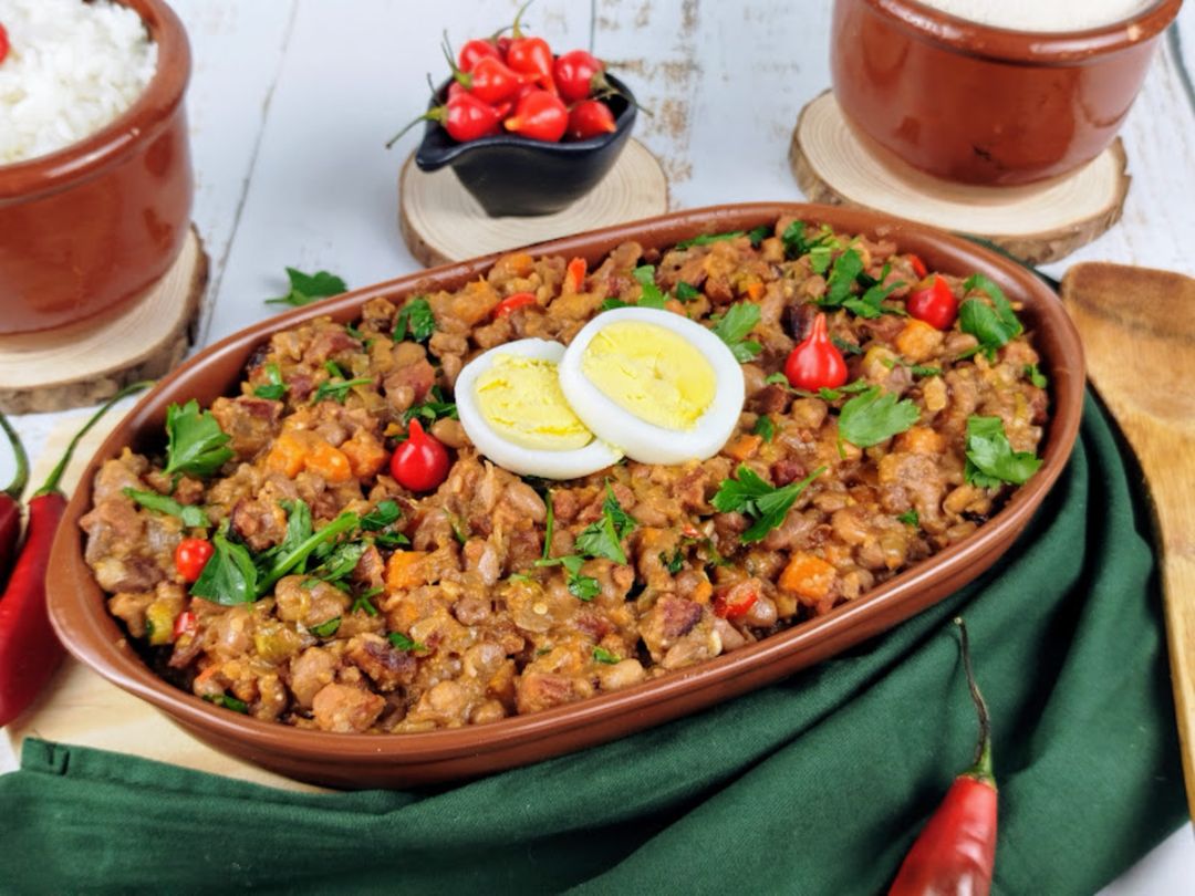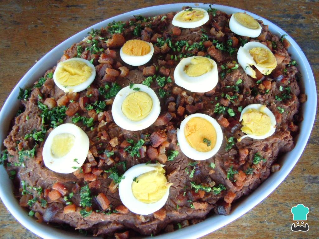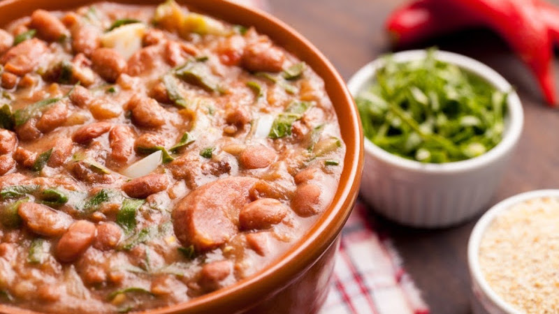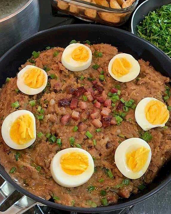 Uma pasta de feijão cozido e batido, engrossada com farinha de mandioca ou de milho. Geralmente é servido com linguiça e couve.